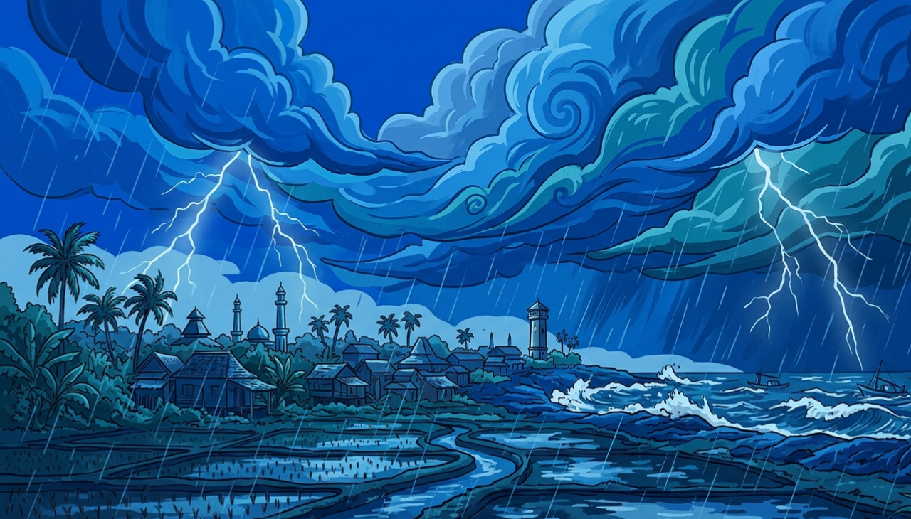 Memasuki siang hingga sore hari, dinamika cuaca mulai berubah. Meskipun suhu udara bisa mencapai puncaknya di angka 31°C, awan mendung diprediksi akan menyelimuti langit Pati. Wilayah seperti Kayen, Sukolilo, Tambakromo, hingga wilayah Pantura Timur seperti Dukuhseti dan sekitarnya, berpotensi mengalami hujan ringan yang terkadang disertai kilat atau petir.